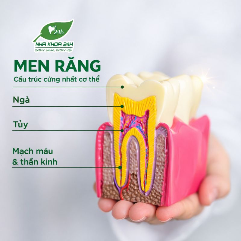 ⚠️ Lưu ý: Men răng không có khả năng tự tái tạo, vì vậy khi đã bị mòn hoặc nứt vỡ sẽ không thể hồi phục hoàn toàn.